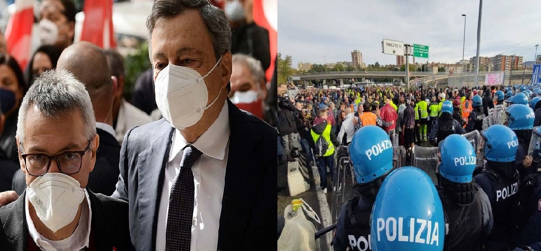 Ci sono due fatti, che hanno a che vedere con la classe lavoratrice, di cui si è parlato molto negli ultimi giorni: la grande manifestazione nazionale contro il fascismo promossa dalla Cgil (insieme con Cisl e Uil) e gli scioperi dei lavoratori portuali, repressi violentemente dalla polizia. Per capire qual è la posizione giusta da prendere in merito a questi due eventi occorre ricordare quali sono, in questa fase, i compiti principali dei rivoluzionari, riassumibili, a nostro avviso, in una sola frase: costruire l’opposizione di classe ai governi degli industriali e dei banchieri (quindi al governo Draghi). Questo slogan è il nostro faro, che ci orienta nel complesso e contraddittorio quadro politico attuale e sulla cui base proveremo a giudicare questi ultimi eventi.