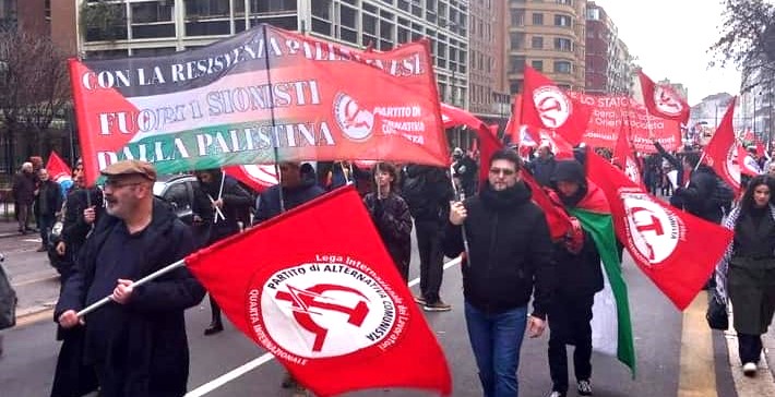 Alternativa Comunista era presente con striscione, bandiere e volantini per sostenere la Resistenza palestinese e divulgare il programma, per noi necessario, per liberare il popolo palestinese dall'oppressione dello Stato razzista e sionista di Israele. Solo la distruzione dello Stato artificiale, coloniale e genocida di Israele potrà liberare la Palestina: passaggio necessario per una futura convivenza tra la maggioranza palestinese – inclusi i profughi - e una minoranza di ebrei non sionisti in una Palestina unica, non razzista, libera dal fiume Giordano al mare.